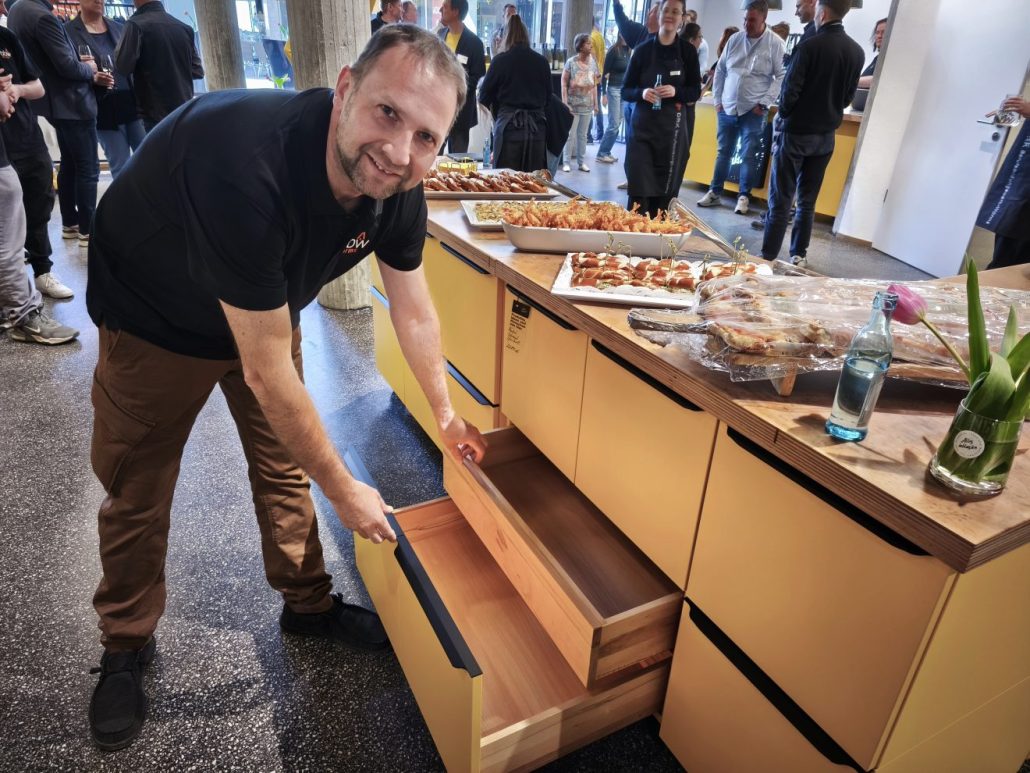 Doch „Alles inklusive“ bezieht sich nicht nur auf das umfangreiche Angebot an regionalen Produkten, was es so in der Innenstadt bisher nicht gab, sondern auch gleich auf das Mobiliar selbst. Wie Heike Hahn, stellvertretende Leiterin des BBW, berichtet, wurden alle Regale, Kommoden, Schränke und auch die Theke von Tischler Azubis der Einrichtung hergestellt und können vor Ort gekauft bzw. bestellt werden. Tischler Ausbilder Tobias Kerle ergänzt im Gespräch mit WO!, dass die Elemte den persönlichen Wünschen angepasst werden, bevor sie die Werkstatt verlassen.