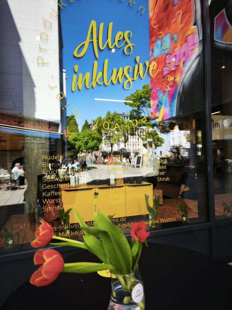 Nachdem bereits zu „Worms blüht auf“ „The Coffee Brothers“ seinen neuen Standort am Obermarkt eröffnete, wurde am 22. April das Geheimnis des benachbarten Ladenlokals gelüftet, das bisher nur mit seinem Namen „Alles inklusive“ warb. Betrieben wird es vom Berufsbildungswerk (BBW) des Deutschen Roten Kreuzes, dementsprechend wird er von jugendlichen Auszubildenden der beruflichen Rehabilitationseinrichtung mit Leben gefüllt.