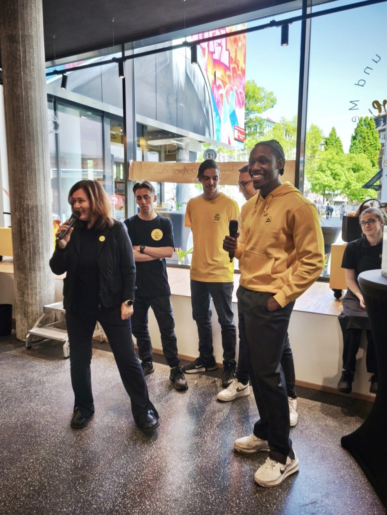 Damit sich alle gleichermaßen wohl fühlen beim Arbeiten oder beim Shoppen, lockt das Geschäft am Obermarkt mit einem erfrischend auffälligen Farbkonzept, das mit seiner Fokussierung auf Gelb und Schwarz erstaunlich frühlingshaft wirkt und zwangsläufig die Blicke auf sich zieht. Für Heike Hahn eine perfekte Wahl, denn schließlich möchte man, dass die Jugendlichen sichtbar werden. Das ist damit schon mal gelungen.