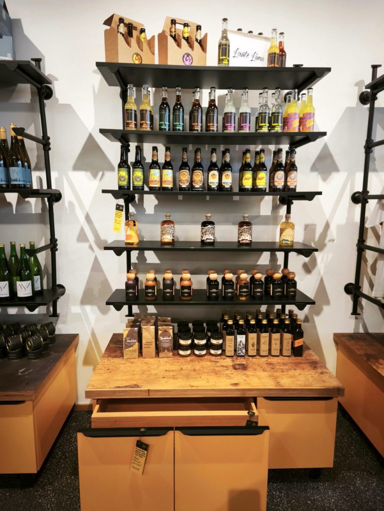 Für die Kunden ist natürlich eine wichtige Frage, was es dort zur kaufen gibt? Wer den Online Shop Merchwerk kennt, der ebenfalls von Auszubildenden des BBW betrieben wird, weiß zumindest schon mal, welche regionalen Anbieter ihre Weine, Schokoladen, Kaffee, Biere, Limonaden, Essige oder Öle in den Regalen zum Kauf anbieten.