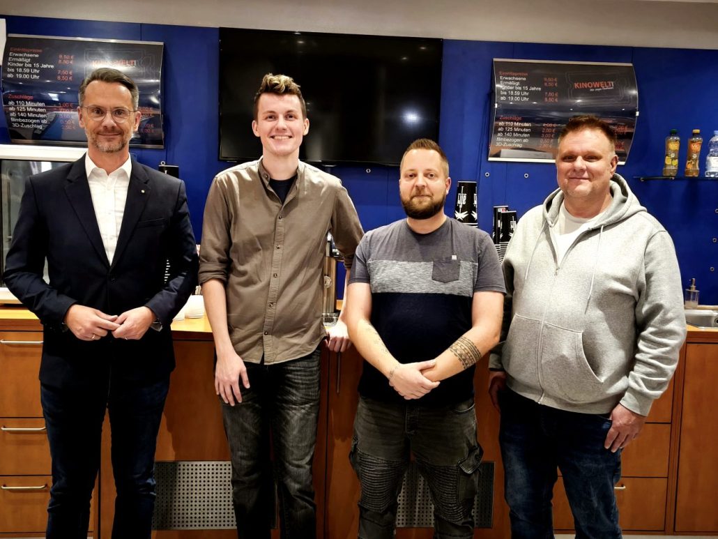 15 Jahre lang brachte Patrick Mais Menschen zum Lachen, aber auch zum Nachdenken, sorgte für Gänsehaut oder zeigte mit seiner Auswahl an Kino- filmen Emotionen, wie er auf einem griffigen Slogan für die Kinowelt Worms warb. Nun verlässt er die Welt des Kinos (siehe auch WO! 10/25) und lud Ende Oktober Wegbegleiter, Freunde, Familie sowie Vertreter der Stadt Worms (OB Adolf Kessel, Bürgermeisterin Stephanie Lohr und Dezernent Peter Englert) zu einem letzten Umtrunk in „seine“ Kinowelt. Um sozusagen die Eintrittskarte in die Welt des Kinos zu übergeben, hatte Mais auch die neuen Betreiber eingeladen. Vertretend für das fünfköpfige Team, das nun seit 27. Oktober für große Kinounterhaltung in Worms zuständig ist, waren Christopher Latzko, Sven Mühlberger und Oliver Lebert zu dieser frühmor- gendlichen Verabschiedung an einem Sonntag nach Worms gereist. Im Kino- geschäft sind die Betreiber keine Unbekannten. Drei der fünf Partner (Latz- ko, Lebert, Alexander Cyron) führen seit mehreren Jahren sehr erfolgreich die Filmwelt in Grünstadt. Sie werden ergänzt durch Mühlberger und Cedric Jankowski. Alle zusammen kennen sich wiederum aus der Corona-Zeit, in der sie zusammen erfolgreich ein Autokino etablierten. Nun wollen sie mit ver- einter Expertise auch das zuletzt strauchelnde Wormser Kino wieder auf Vordermann bringen. Um den Wechsel im Namen auch sichtbar zu machen, hat die Kinowelt Worms nun auch einen neuen Namen: Arkaden Lichtspiele. Natürlich ist dieser Name nicht zufällig gewählt. Vor 1980, als der KW Kino- center in der Wilhelm-Leuschner-Straße eröffnete, waren in den Räumen zwei Kinos beheimatet, nämlich das KW und eben das Arkaden. Die Betreiber des Centers in den 80er Jahren beschlossen damals, das KW beizubehalten. Nun endet also 2025 nicht nur die Ära Mais, sondern auch das Kürzel KW. Doch entscheidend ist natürlich nicht der Name, sondern das Programm. Und hier versprechen die neuen Inhaber einen spürbaren konzeptionellen Wechsel. Was das genau heißt, das erfahren Sie in unserer Dezember-Ausgabe.