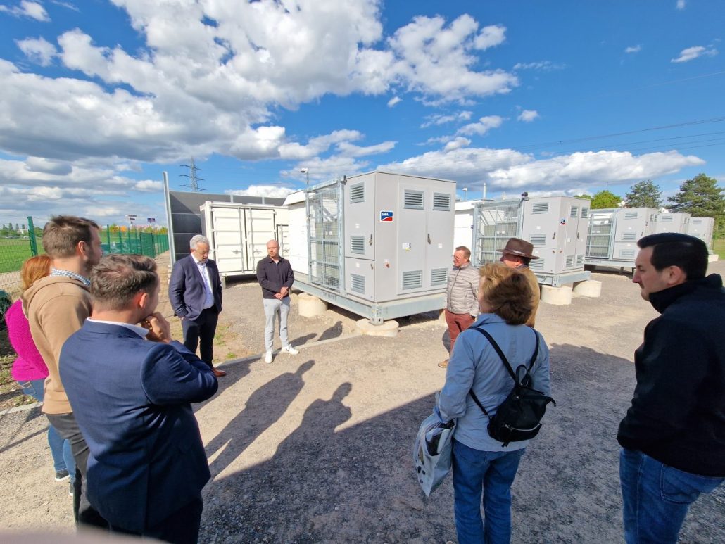 Stephan Wilhelm und Jens Blüm von der EWR AG sowie Marc Bodeit als Vertreter der TIMBRA Consulting GmbH ließen es sich nicht nehmen, die Stadtratsmitglieder aus erster Hand zu informieren. Das Batteriespeicherwerk steht in unmittelbarer Nähe zum Umspannwerk Holzhof der EWR Netz GmbH. Es kann flexibel Energie aufnehmen und wieder abgeben und ist damit ein Schlüsselelement für eine stabile Stromversorgung, auch bei wetterbedingten Schwankungen der Erzeugung. Der Großspeicher hat eine Leistung von 30 Megawatt und liefert mit einer Kapazität von 65 Megawattstunden einen unverzichtbaren Beitrag zur Netzstabilität und zur Integration erneuerbarer Energien in der Region. Die gespeicherte Energie entspricht der Kapazität von rund 1.200 Elektroautos und könnte 2.000 Haushalte für 12 Stunden mit Strom versorgen.