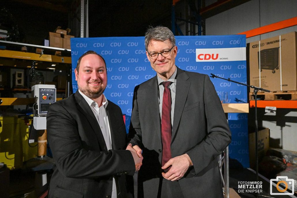 Prominente Unterstützung für den Wormser CDU-Landtagskandidaten: Bundesverkehrsminister Patrick Schnieder hat beim Bürgerdialog in Worms Station gemacht. Rund 130 Gäste waren der Einladung in die Räume von E.W. Neu in der Cornelius-Heyl-Straße gefolgt, unter ihnen auch der Bundestagsabgeordnete Jan Metzler und die Wormser CDU-Vorsitzende Stephanie Lohr.