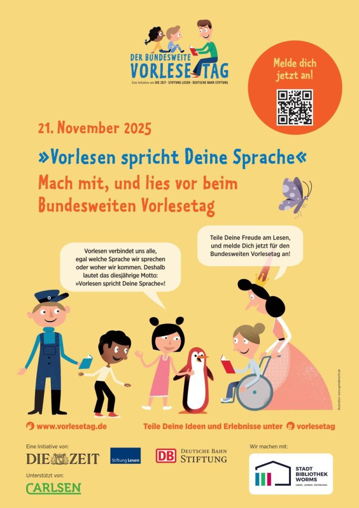Die Stadtbibliothek Worms ist Teil von Deutschlands größter Vorlesecommunity: Am Freitag, 21. November, findet zum 22. Mal der Bundesweite Vorlesetag statt und steht in diesem Jahr unter dem Motto „Vorlesen spricht Deine Sprache!“.