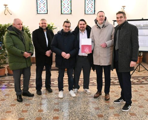 Innenminister Michael Ebling übergab einen Förderbescheid zur Realisierung eines modernen Betriebsgebäudes für den Integrationsbetrieb Friedhof der Stadt Worms (IBF) an Stadtentwicklungsdezernent Timo Horst und den für die Friedhofsbetriebe…