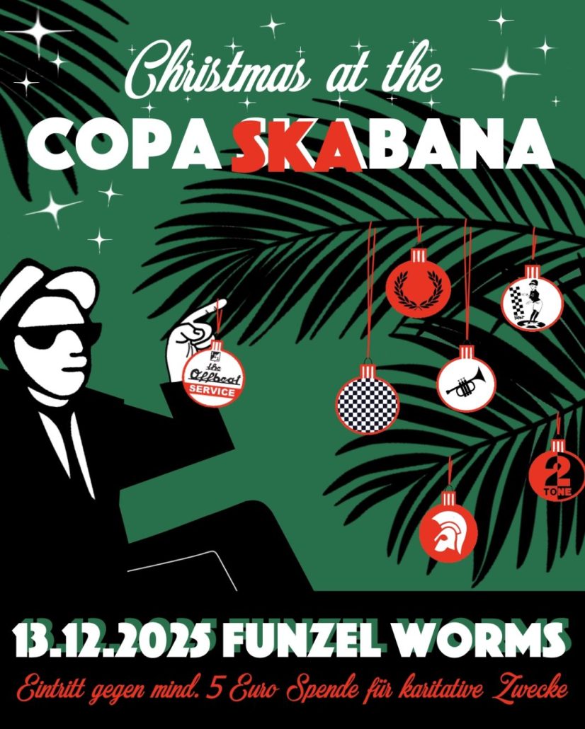 In der Weihnachtszeit kommen wir gerne im Kreise unserer Liebsten zusammen. So auch am 13. Dezember 2025, an dem The Offbeat Service in unser aller kuscheliges Wohnzimmer, Die Funzel, zurückkehren. Die Copa Skabana erscheint also in weihnachtlichem Glanz und die Band musiziert ganz im Sinne der Jahreszeit für den guten Zweck. Begünstigt ist das Kinder- und Jugendhilfezentrum St. Marien.