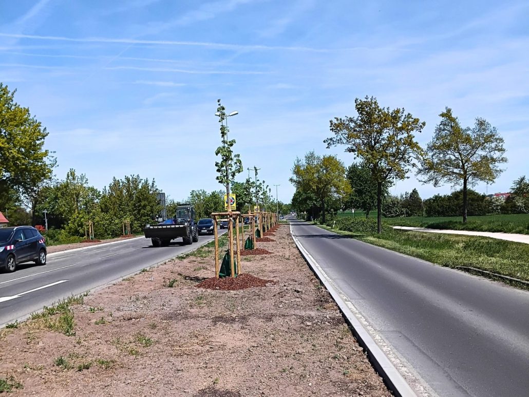 Insgesamt beläuft sich die entsiegelte Fläche auf 1.880 Quadratmeter. Die freigelegten Flächen wurden im Anschluss schrittweise mit Erdboden aufgefüllt und für die Begrünung vorbereitet. Ein sichtbares Highlight der Maßnahme, das das Straßenbild künftig prägen wird, ist die Neupflanzung von insgesamt 22 Bäumen entlang der Strecke.