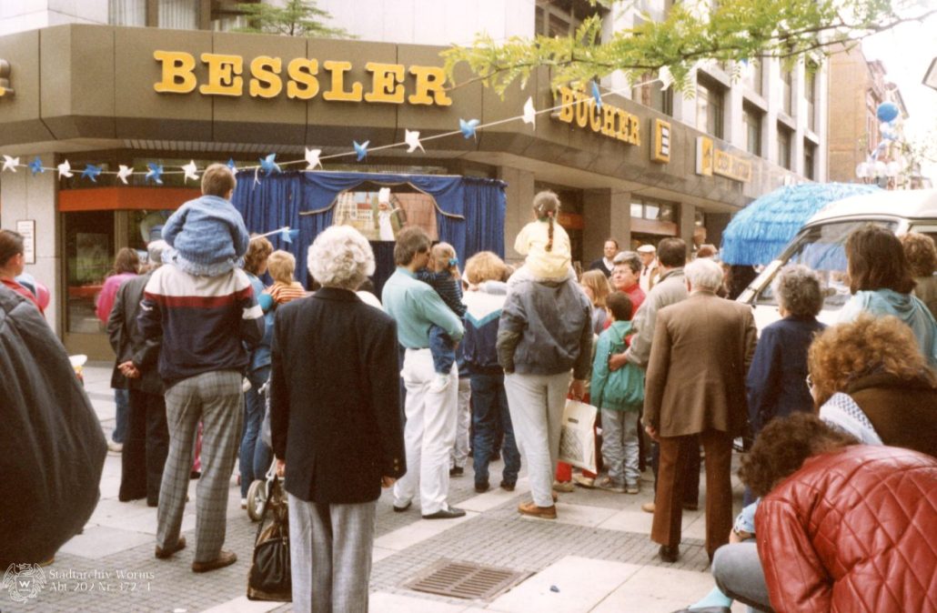 Bücher Bessler, Hafergasse 11 (ca. 1978), neues Geschäft in der KW 1 (ab 1982). © Stadt Worms / Stadtarchiv Worms, Abt. 202 Nr. 372/4