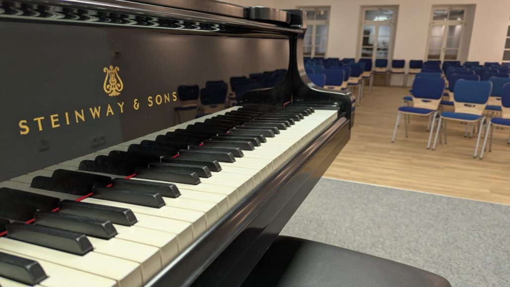 Foto: Der Konzertflügel im Saal der Lucie-Kölsch-Musikschule. © Stadt Worms / Lucie-Kölsch-Musikschule