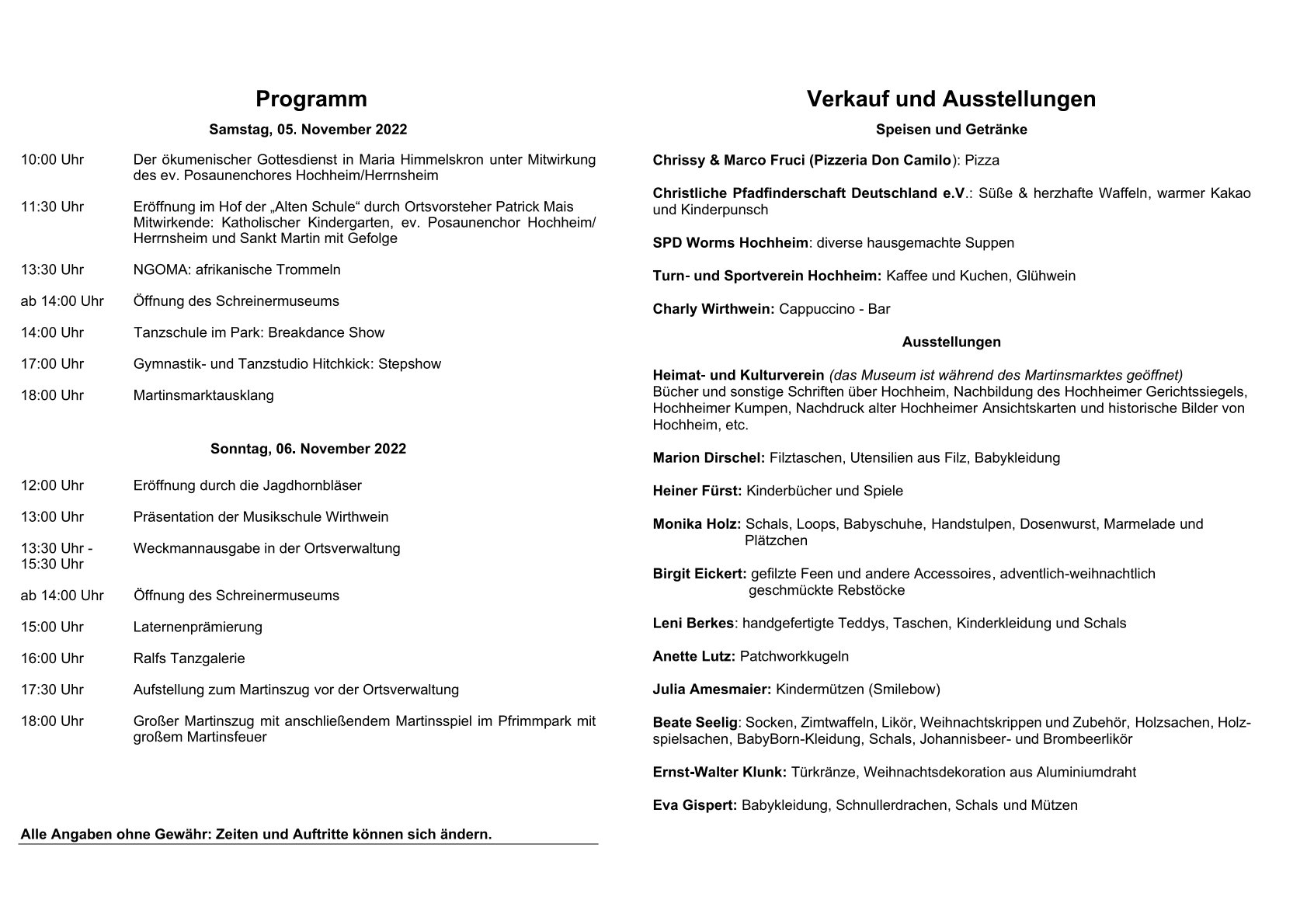 Hier sehen Sie das komplette Programm für den Martinsmarkt in Hochheim (bitte Bild anklicken):