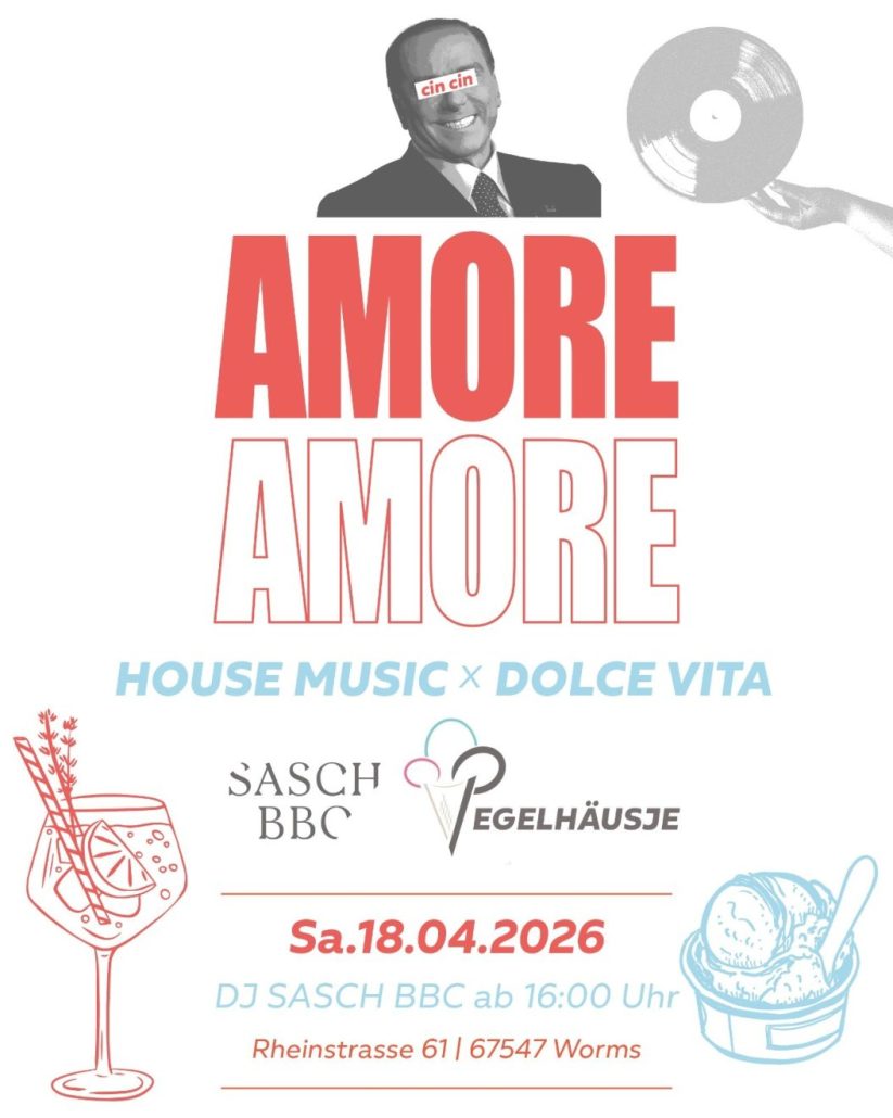 Die neue Reihe „AMORE AMORE“ will künftig regelmäßig an wechselnden Orten stattfinden und richtet an Jung und Alt – und an alle, die House Music in entspannter Atmosphäre genießen wollen.“