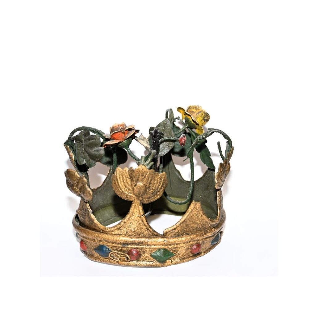 Leihkronen wurden gewöhnlich aus Metall hergestellt. Pflanzenranken und Blütendarstellungen, wie Rosen und Vergissmeinnicht, sind ein häufiges Motiv, so auch bei unserer Totenkrone im Museum Andreasstift in Worms. Leider ist die Herkunft der Krone unbekannt. Trotzdem ist sie uns als Symbol des jahrhundertelang anhaltenden Brauchs der Aufstellung von Totenkronen für Unverheiratete erhalten geblieben und kann nun für einen Monat im Museum bestaunt werden.