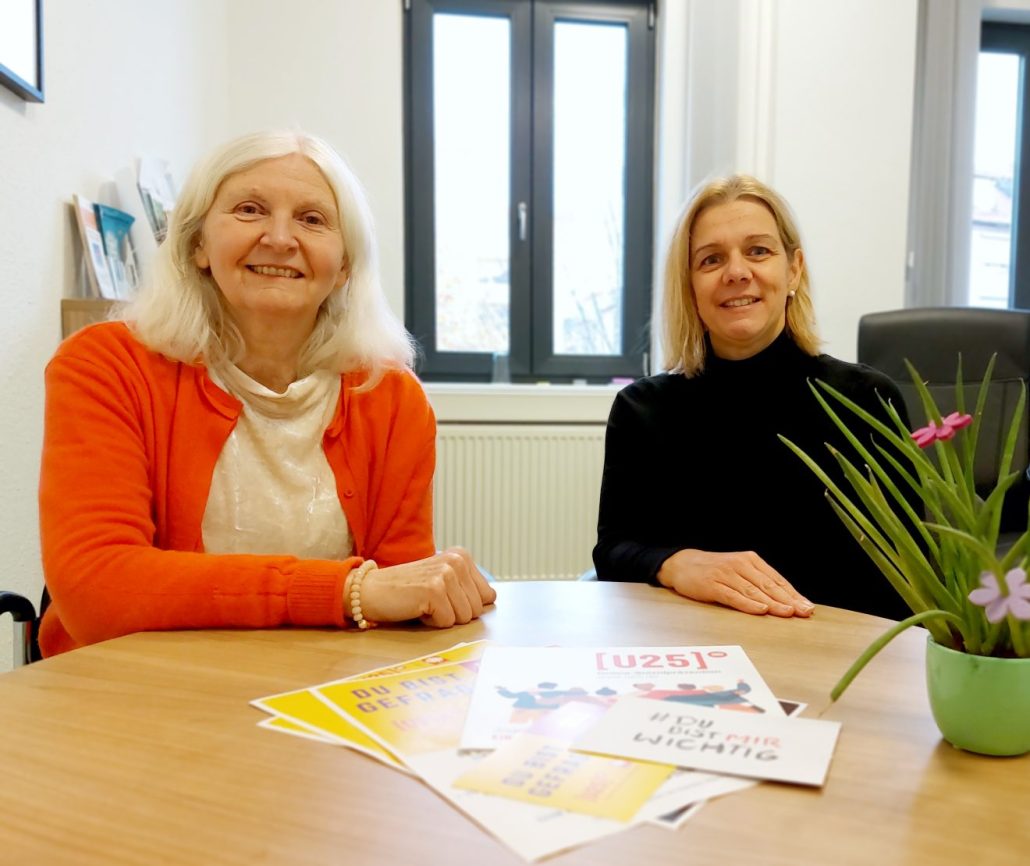 Die Caritas in Worms baut die [U25] Online-Suizidberatung auf, freut sich Fachbereichsleiterin Anja Jäger (rechts). Ansprechpartnerin für das Projekt und die Ausbildung sogenannter Peers ist Psychologin Claudia Haug (links).